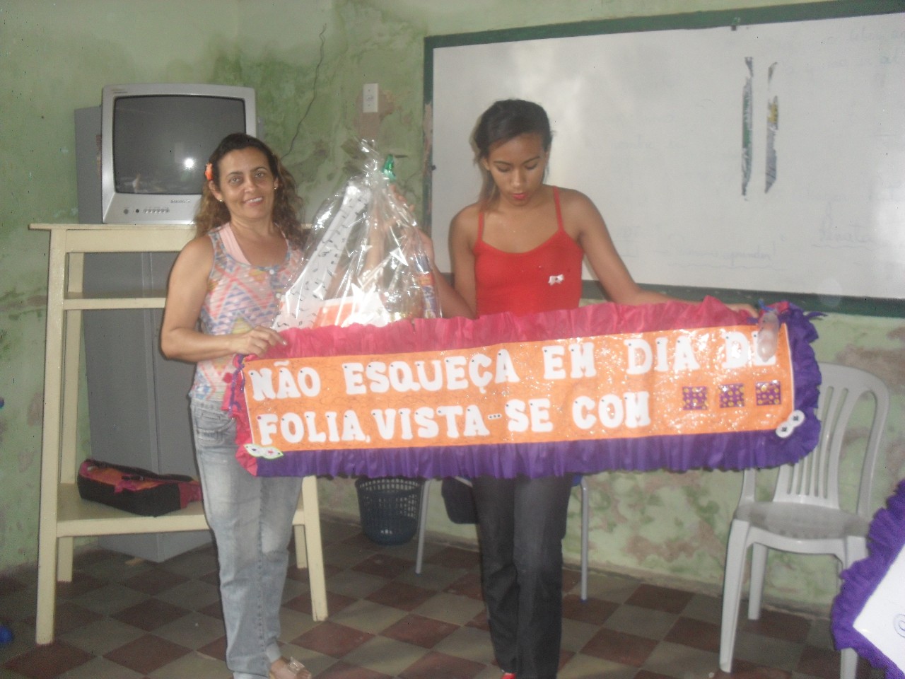 O projeto Carnaval é uma atividade desenvolvida para prevenir algumas situações em que nossos jovens são expostos principalmente durante este período, foi realizado um trabalho de preveção através de palestras realizadas pela pelos enfermeiros Francisco e Andrea e pela professora Suzana Liberato sobre Doenças Sexualmente Transmissíveis e Violência no trânsito, tendo como culminância a produção de cartazes sobre o tema e exposição nas galerias da escola.